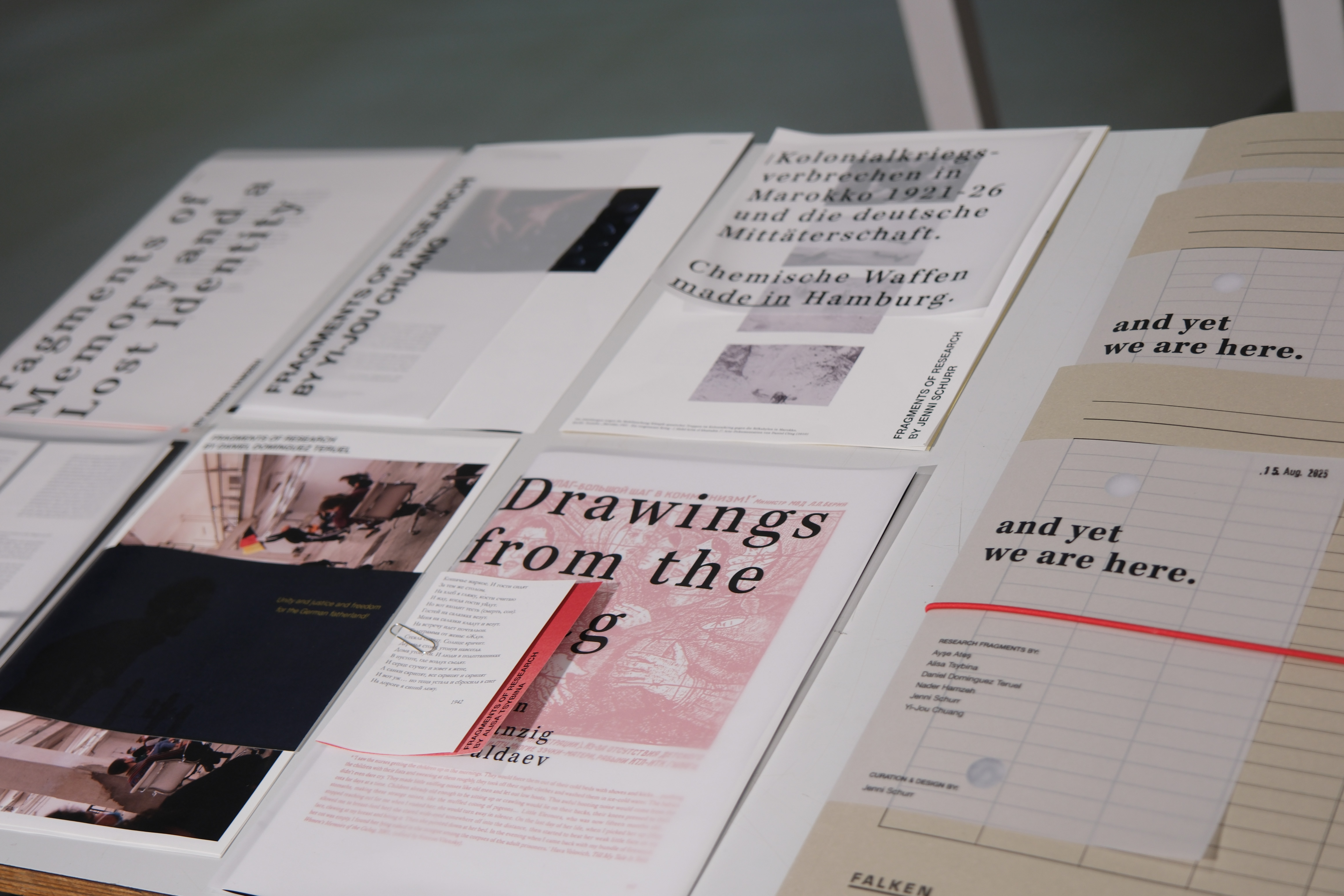 Die Ausstellung „...and yet we are here“ versammelt Künstler*innen, die konzeptuell mit historischen, sozio- und geopolitischen Themen arbeiten. Aus ganz unterschiedlichen und internationalen Perspektiven beleuchten sie dabei Fragen, die unsere Gegenwart tiefgreifend prägen: Wie sind wir zu der Gesellschaft geworden, die wir heute sind? Was haben wir gelernt – oder eben nicht gelernt? Welche Geschichten wurden erinnert, welche verdrängt?